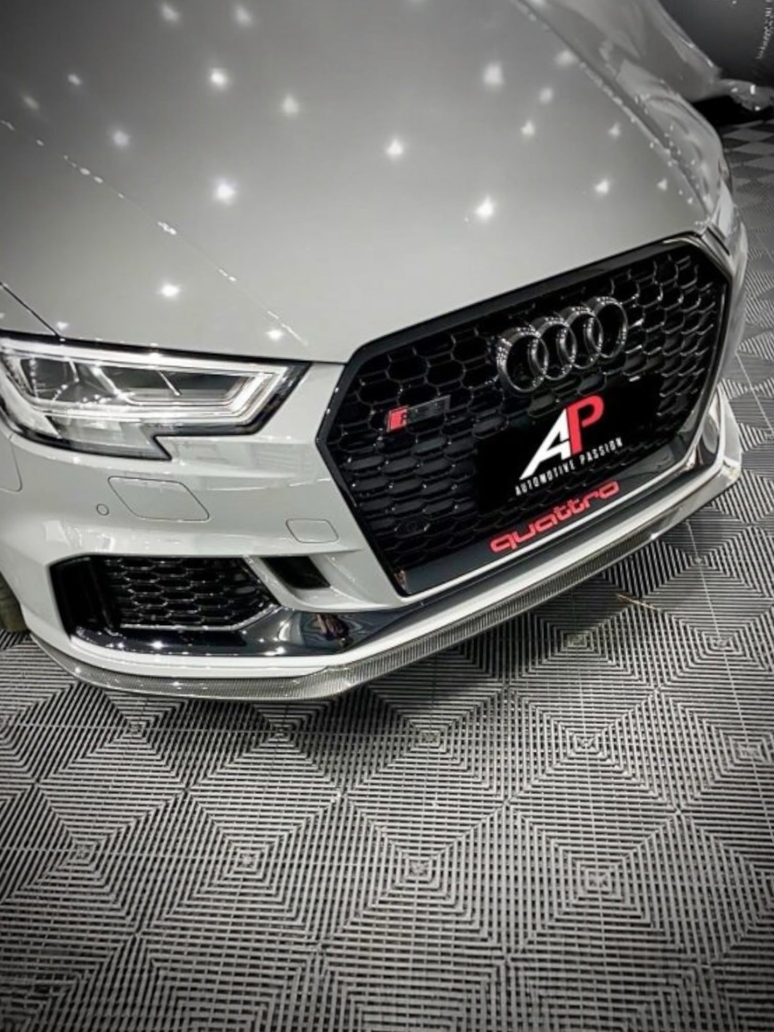 Automotive Passion’s Latest design enhancement for the Audi RS3 8V Sedan/Sportback is a dry carbon fibre front splitter. Using the existing factory mounting points, our design team has produced an extremely strong and lightweight aerodynamic lip to complement the aggressive appearance of this car, allowing for easy fitment.